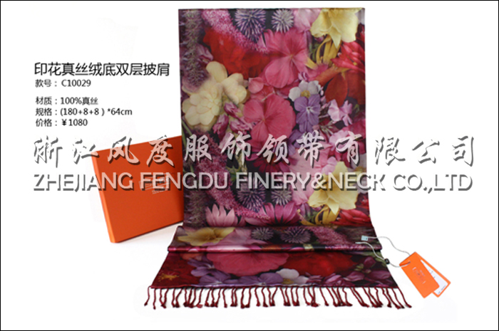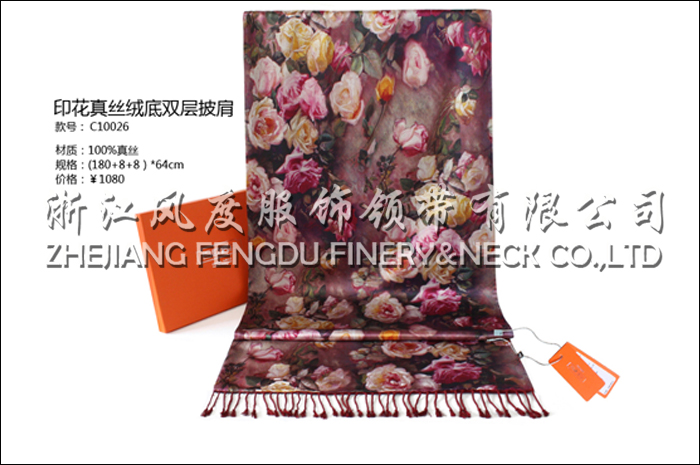 印花真絲絨底雙層披肩
